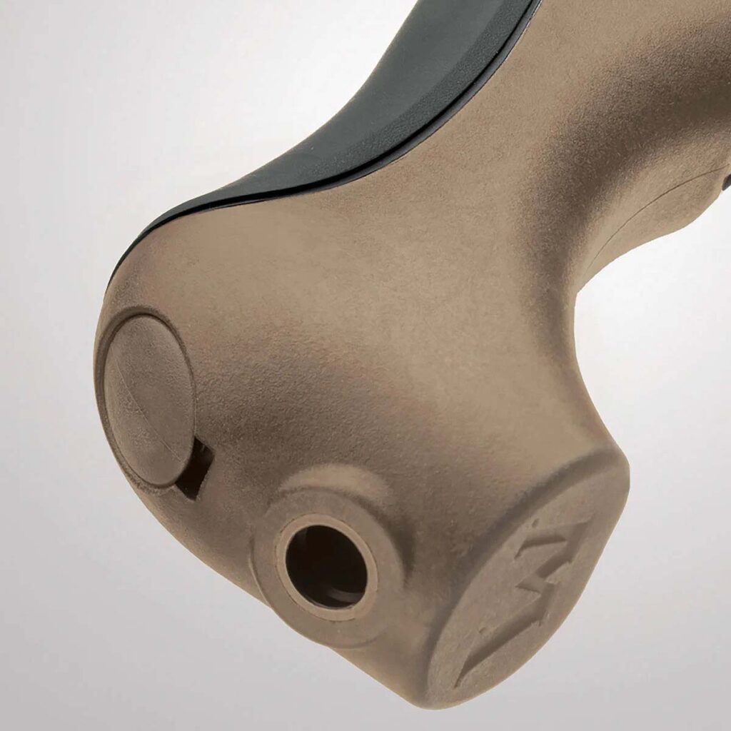 Bliksem’in en dikkat çekici özelliklerinden biri, Bird’s Head tarzı polimer kabzası. Bu kabza, tüfeğin omuzdan ateşlenmesini engellediği için ABD’deki Ulusal Ateşli Silahlar Yasası (NFA) gerekliliklerinden muaf tutuluyor. Bu da onu genel bir Title 1 Firearm kategorisine sokuyor ve satın alma sürecini daha kolay hale getiriyor.