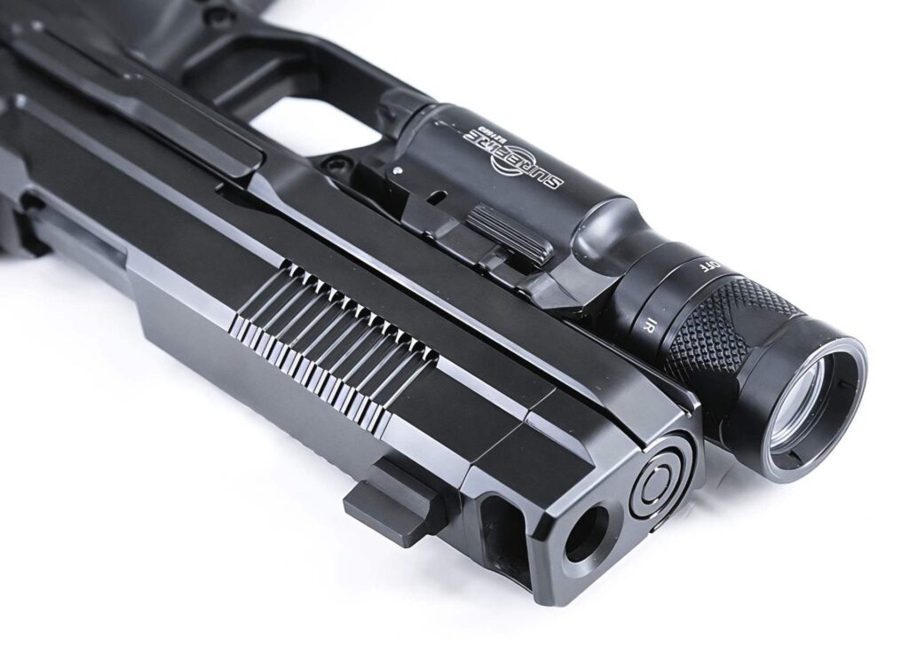 Tabancanın gövdesi iki parçalı bir yapıya sahip: Sürgü rayları ve kontrollerin bulunduğu bölüm 416 paslanmaz çelikten üretilirken, kabza kısmı hafif ve dayanıklı 6061 alüminyumdan yapılmış. Bu tasarım, kullanıcıya ergonomi ve modülerlik sunuyor. Kabza panelleri farklı dokulara sahip seçeneklerle kişiselleştirilebilirken, Glock tipi şarjörlerle uyumluluk da sağlanıyor.